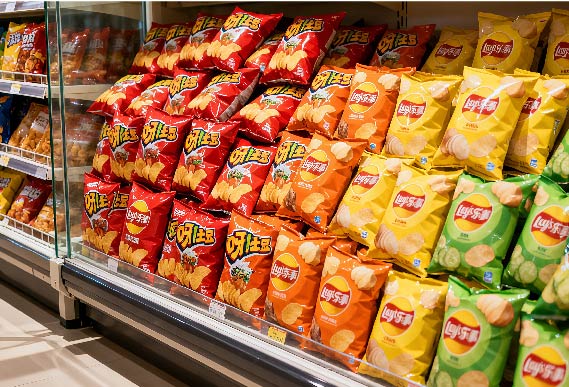 色彩心理是食品包装的核心竞争力,可助力品牌突围。如薯片鲜艳颜色凸显口味,快速吸引消费者。其科学逻辑为:光的波长差异与生活经验形成规律,暖色调适配辣味零食,冷色则为轻食品牌传递自然感。